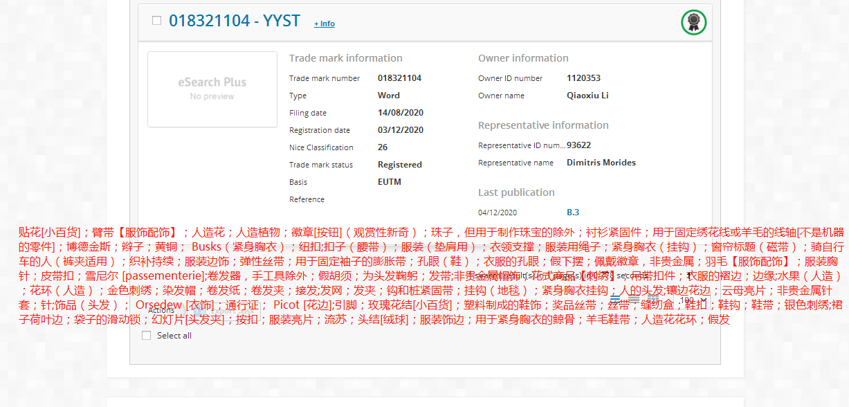 歐盟商標(biāo)-yyst-26類-鈕扣拉鏈假發(fā)