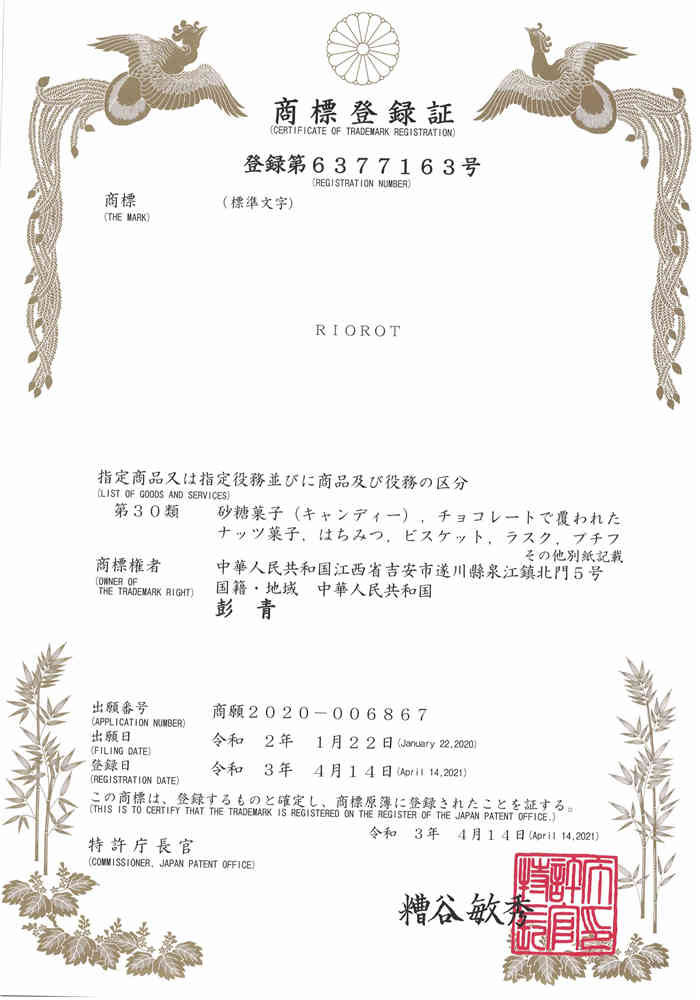日本商標(biāo)-RIOROT-30類(lèi)-方便食品